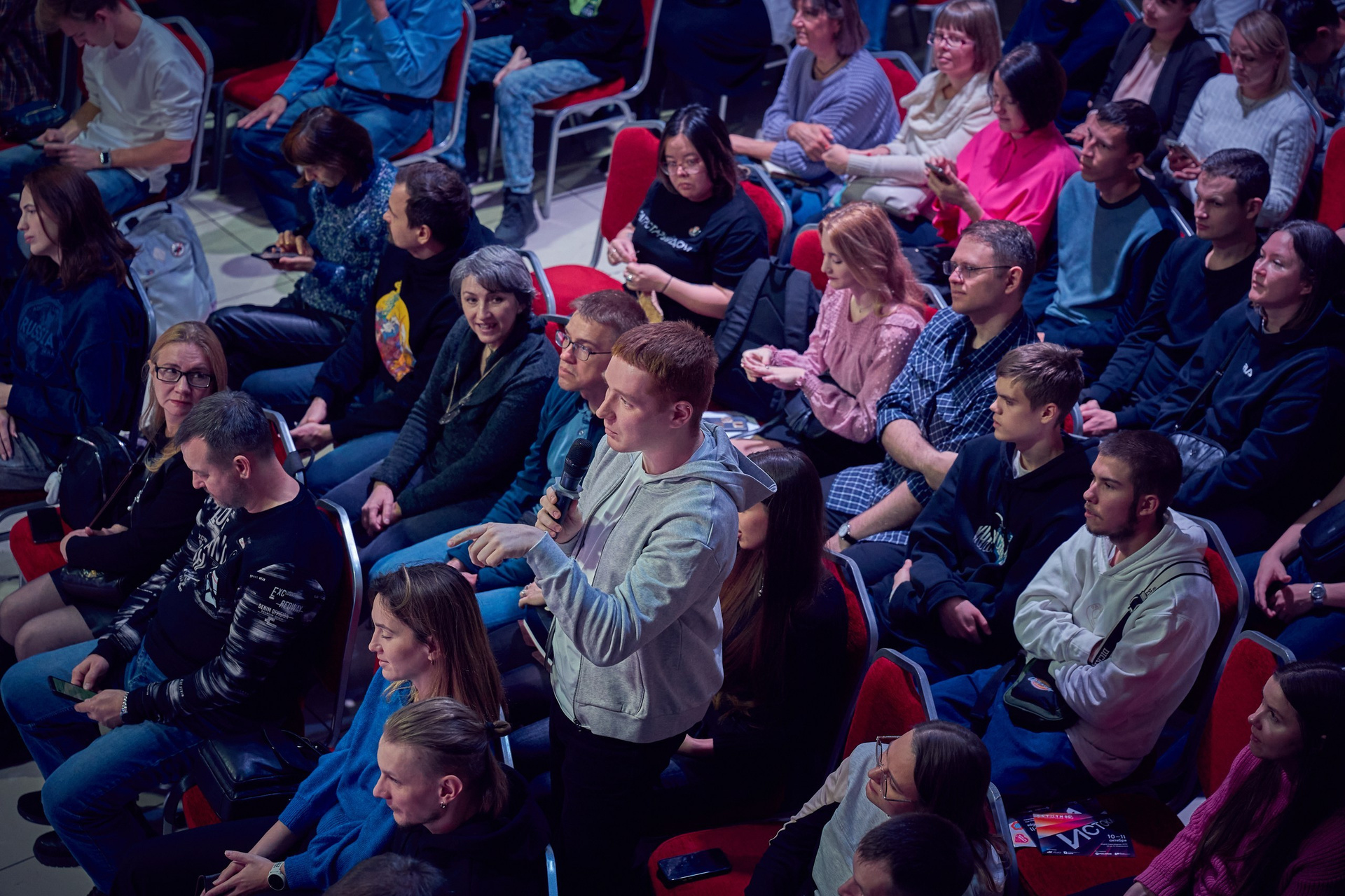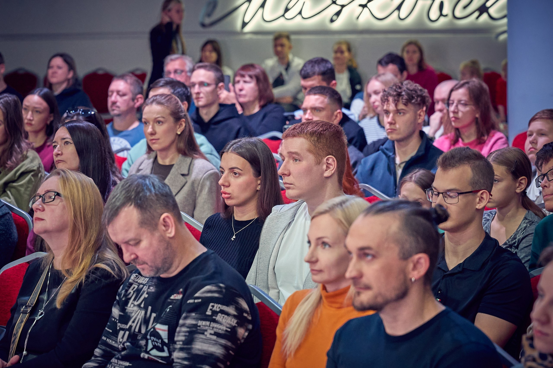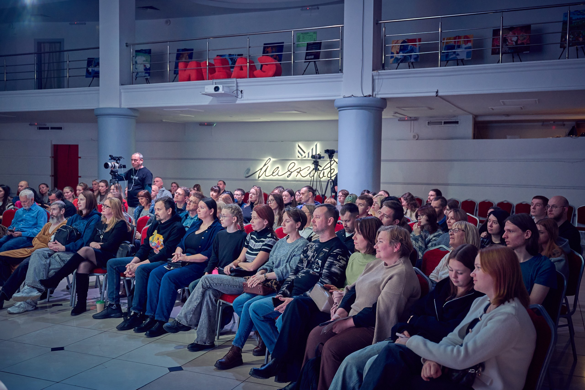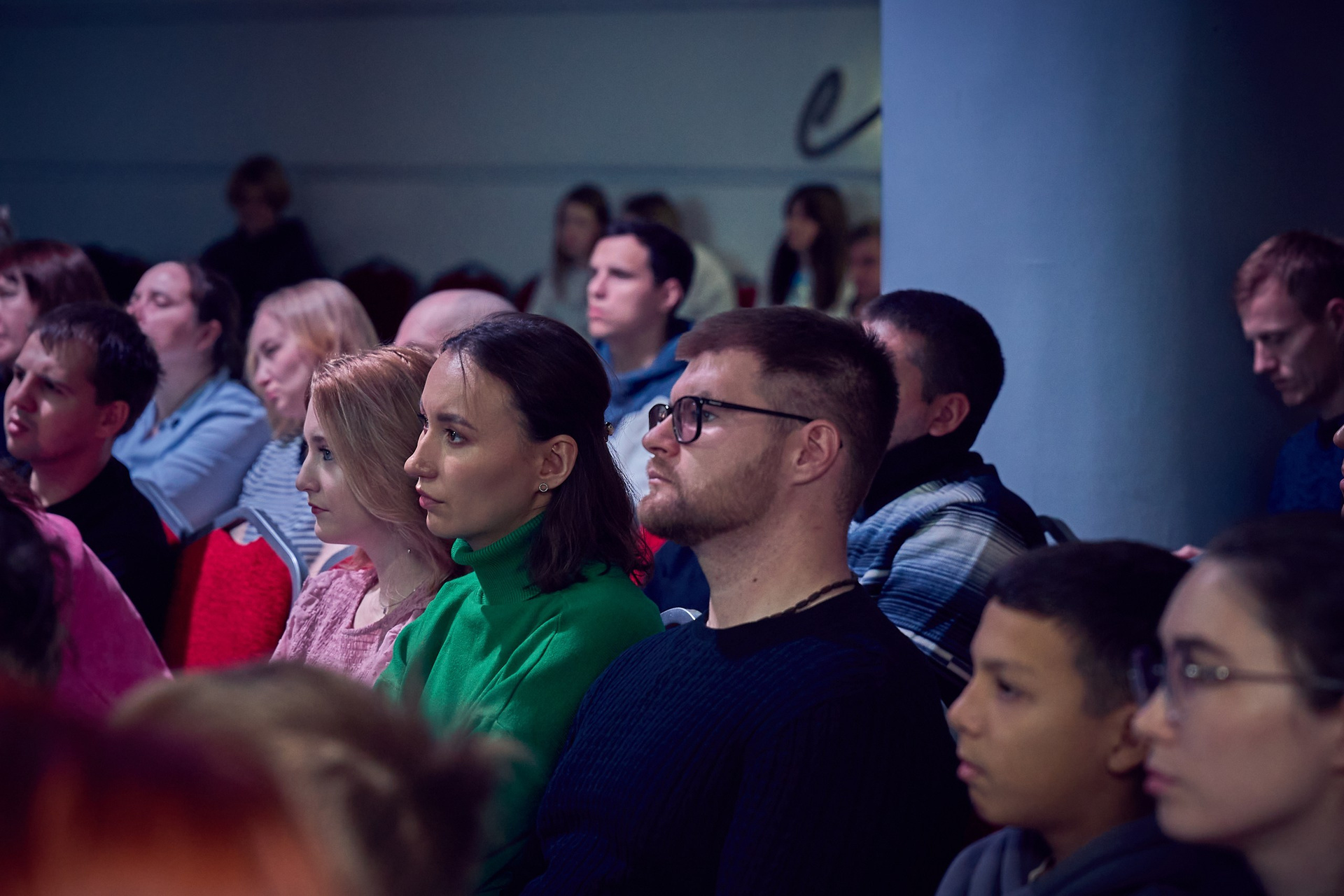 • Реакция зрителей. Отдельная гордость — серия фотографий аудитории. Кадры получились живыми именно потому, что люди были полностью вовлечены в процесс: внимательные взгляды, активное участие в дискуссиях, искренний интерес к сложным темам.
