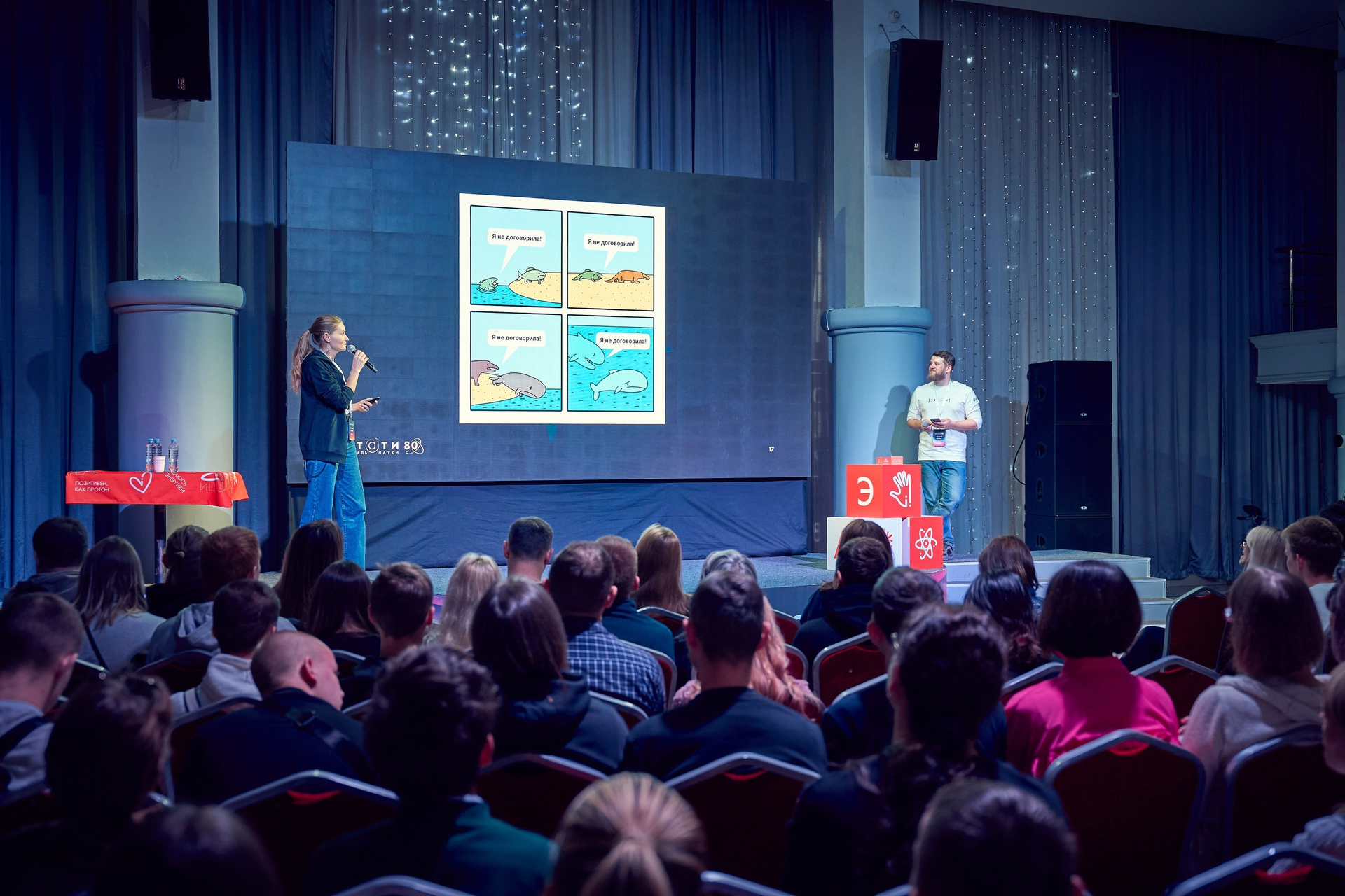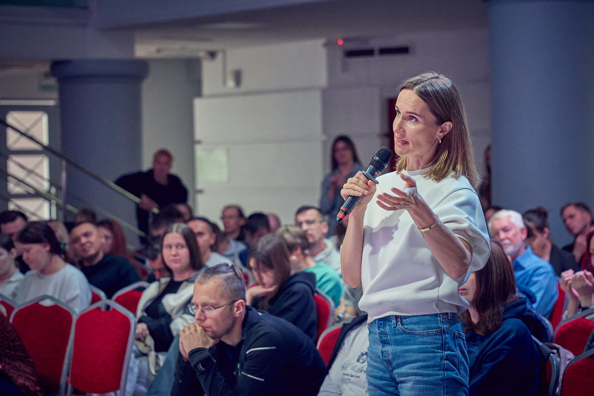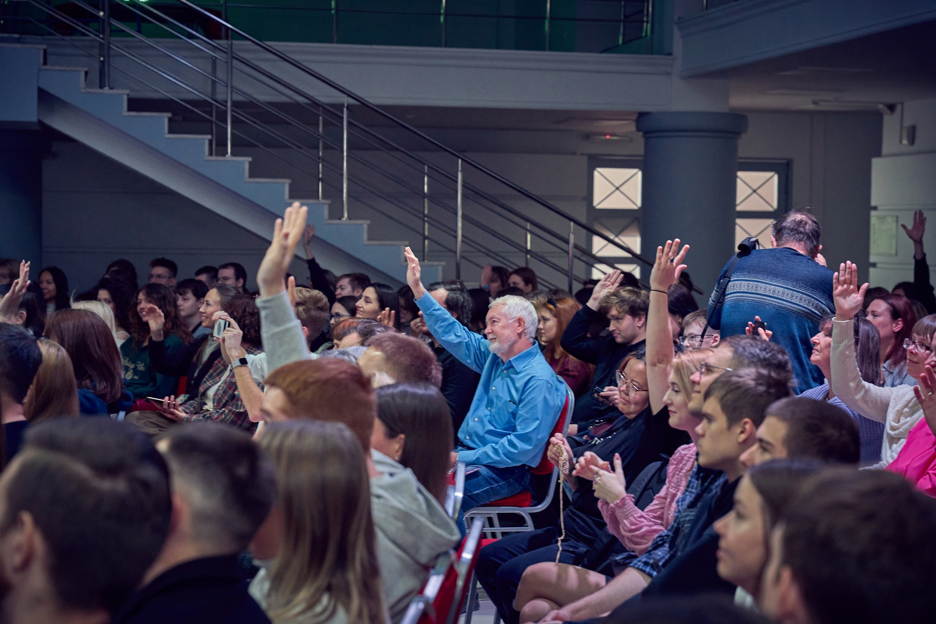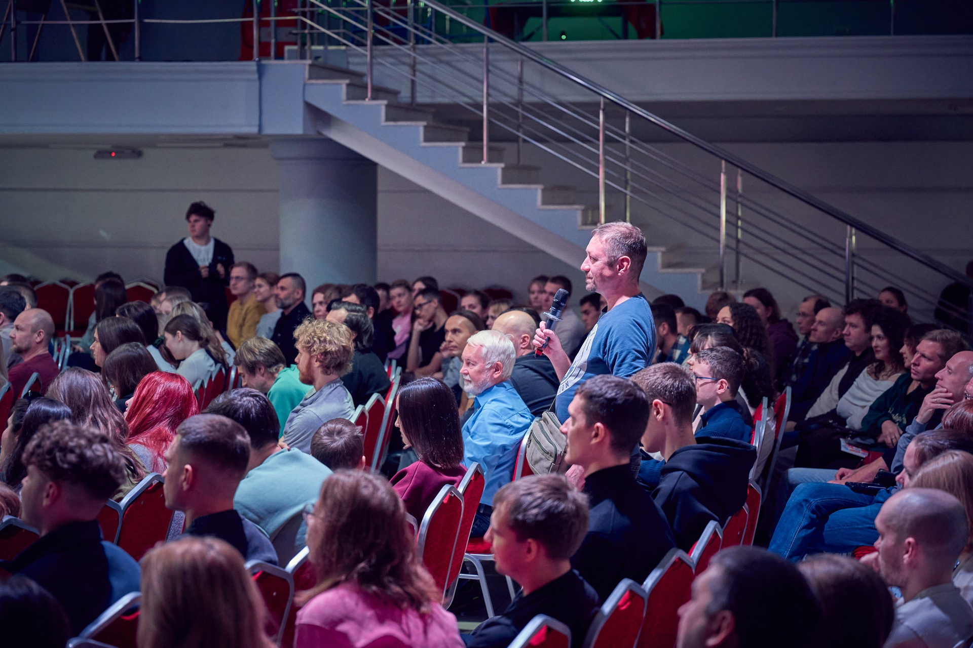 • Реакция зрителей. Отдельная гордость — серия фотографий аудитории. Кадры получились живыми именно потому, что люди были полностью вовлечены в процесс: внимательные взгляды, активное участие в дискуссиях, искренний интерес к сложным темам.
